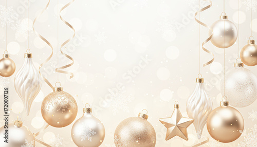 A festive background featuring elegant gold and white ornaments and ribbons, perfect for Christmas or holiday-themed designs.