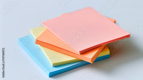 a few multicolor pastel Adhesive Note in orange shades on white Background