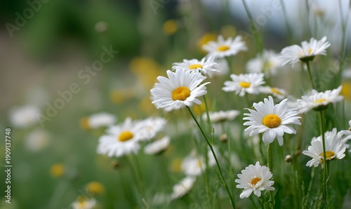 a field of fresh daisies in summer