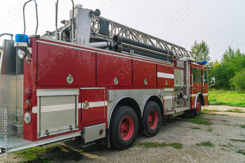 A fire truck for the delivery of firefighters to the place of fire and the supply of extinguishing agent for extinguishing. Equipment for rescuing people in case of fire. Emergency rescue service.