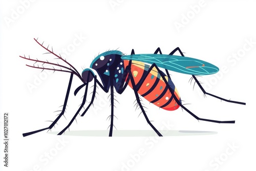 A flat style mosquito illustration, isolate on white background, featuring simple shapes and bold colors.
