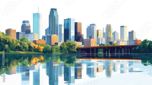 A flat vector city skyline of Minneapolis, Minnesota, USA. A beautiful panoramic view of Skyscrapers.