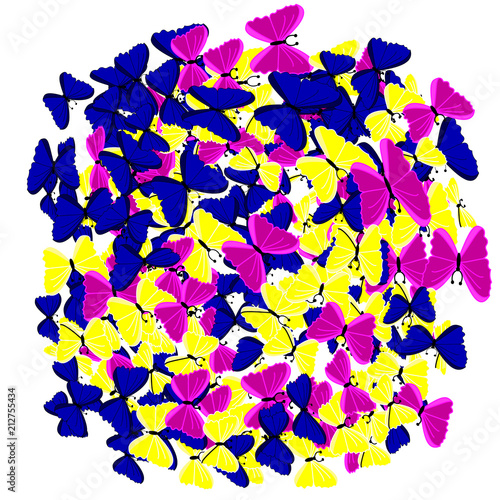 A flock of butterflies on a white background, background.