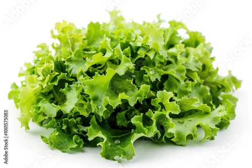 A fresh head of lettuce sits on a clean white surface, ready for use or display