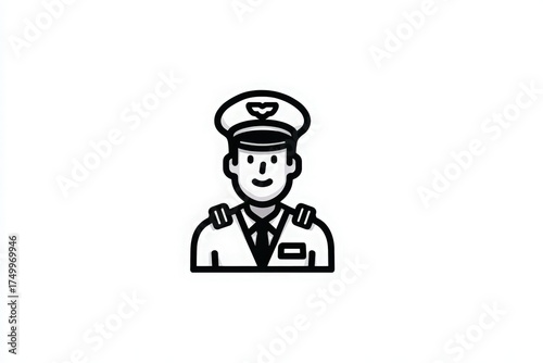 A friendly pilot wearing a formal uniform and cap stands proudly. The setting suggests an airport environment, reflecting the aviation industry and air travel.