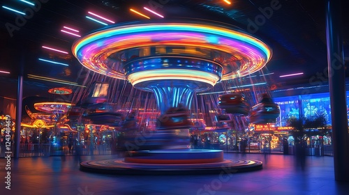 A futuristic carnival with holographic rides and glowing food stands