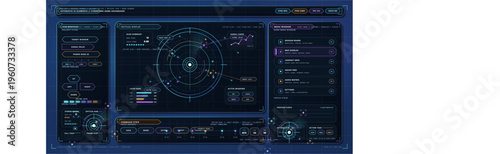 A futuristic cyberpunk game dashboard featuring a tactical display
