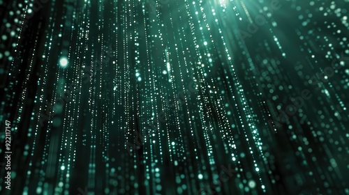 A futuristic digital matrix background with streams of glowing data cascading down a dark screen