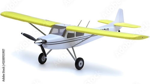 A futuristic lightweight airplane with slim wings and a small fuselage, isolated on a white backdrop to emphasize its energy-efficient design