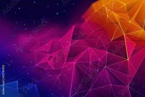 A futuristic network wallpaper created from vibrant gradient polygons and digital patterns.