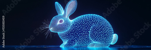 A futuristic rabbit icon glowing with habitat data, symbolizing online wildlife conservation platforms, digital animal tracking, and biodiversity analytics.