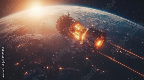 A futuristic spacecraft propelling away from Earth, showcasing advanced technology and exploration.