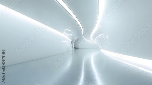 A futuristic white hallway with a glowing light at the end,white hallway with a bright light at the end,Empty white futuristic corridor with a glowing light in the distance