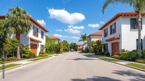 A gated community of luxury villas with lush landscaping, Residential Real Estate Luxury Properties Housing Demand, exclusive neighborhood living