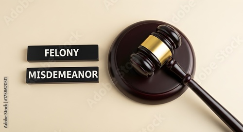 A gavel rests next to blocks that read felony and misdemeanor, representing legal concepts