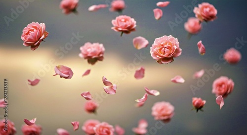 A gentle storm of pale pink roses