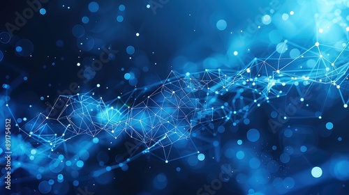 A geometric abstract background with moving lines and dots, a digital network connection, and an abstract background with moving lines and dots. Generative AI.