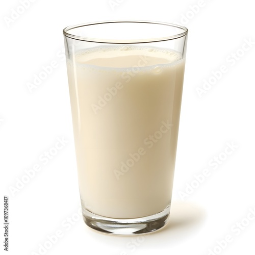 A Glass of Milk with Bubbles on a White Background