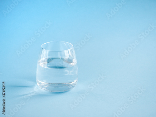 a glass of plain water on a blue background