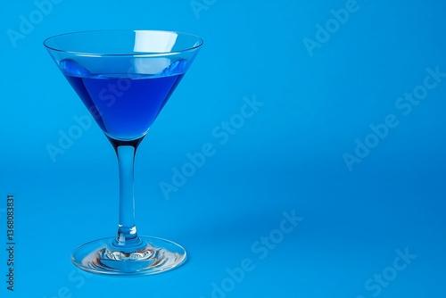 A Glass of Vibrant Blue Cocktail on a Blue Background. A stylish image perfect for beverage-related projects and designs.
