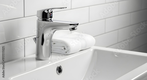 A Gleaming Faucet Over a Crisp White Sink for Modern Bathrooms and Kitchens