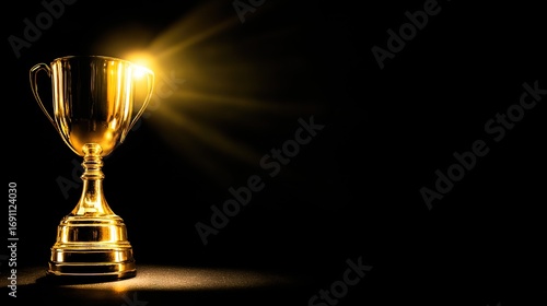 A gleaming gold trophy sits on a velvet stand, radiating achievement and prestige.