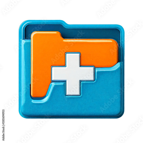 a glossy, square icon features an orange folder overlaying a blue background with a white plus sign in the center.