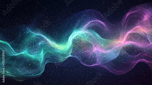 A glowing aurora-inspired background with flowing waves of green and purple light dancing across a starry night sky. The soft transitions between the vibrant hues evoke a sense of magic and