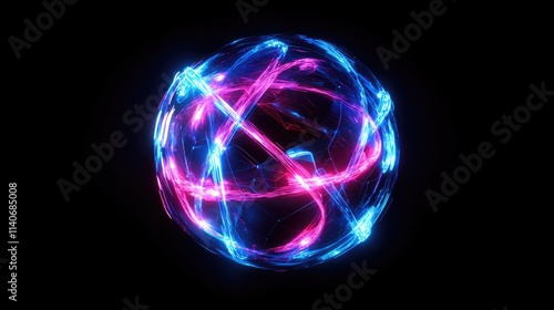 A glowing digital globe connected by vibrant holographic lines, representing global network connections, futuristic, neon, 3D render, high detai