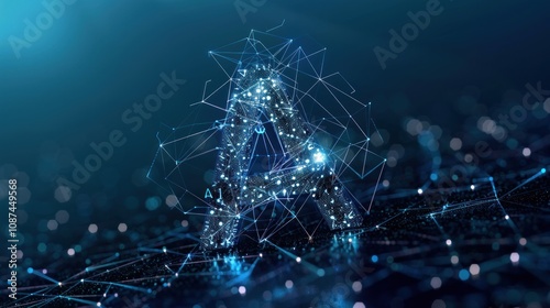 A glowing, digital letter A formed from connected lines and dots on a blue background.