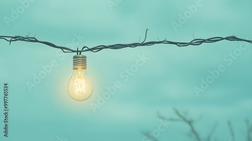 A glowing light bulb surrounded by intricate, tangled wires, with one wire radiating a soft golden glow to represent insight, set against a dreamy watercolor backdrop
