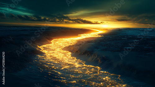 A glowing river merging into the sea, symbolizing a pledge of unity. (3)