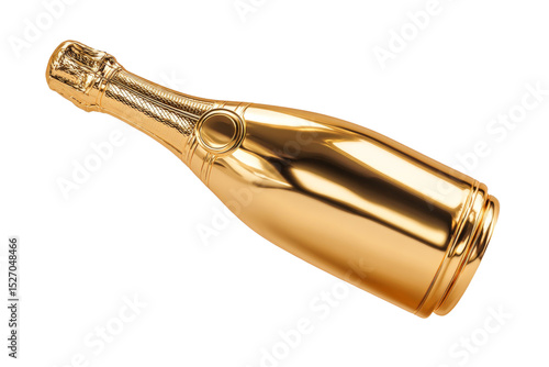 A gold champagne bottle with a gold label