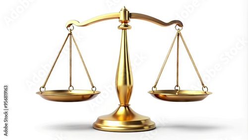 A gold scales icon with a subtle shadow effect is suspended in mid-air, perfectly balanced, conveying fairness, justice, and precision in a modern design element.
