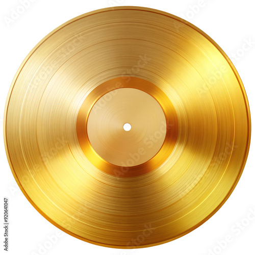 A golden realistic LP vinyl record template cut out white isolated transparent background.