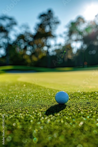 A golf ball sitting on a lush green field. Suitable for sports and leisure concepts