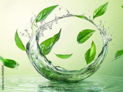 A green leafy plant is floating in a circle of water