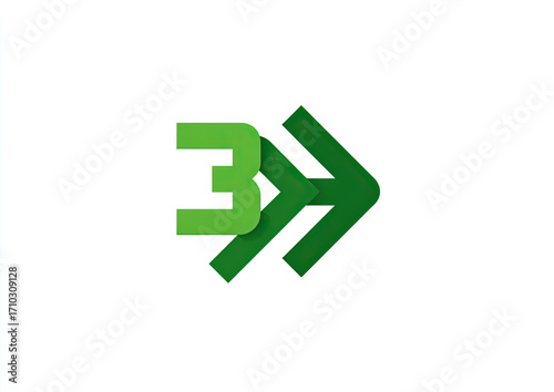 A green stylized logo featuring the number 3 and double arrow