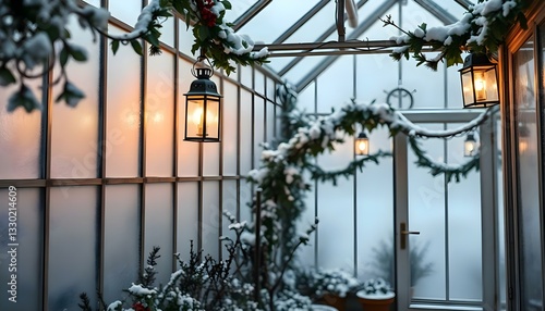 a greenhouse with a lot of snow on the ground