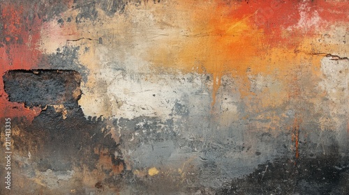 A gritty, aged concrete wall featuring bold grunge textures, deep cracks, and scattered weathered stains in an abstract style.