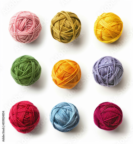 a group of balls of yarn on a white surface
