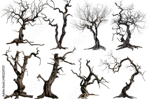 A group of bare trees, no leaves, winter landscape
