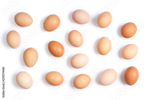 A group of eggs on white background. Top view. Texture.