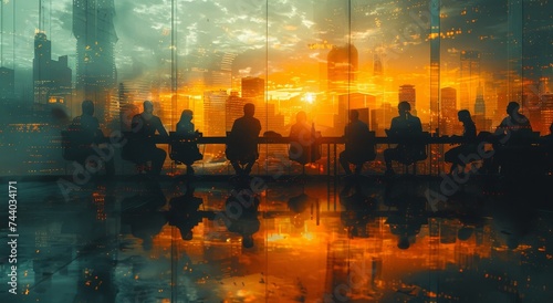 A group of friends enjoy a refreshing outdoor lunch, their laughter and conversation reflected in the towering skyscrapers of the city