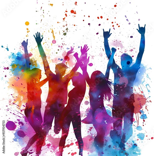 A group of people cheering and celebrating, watercolor illustration style
