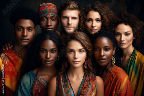 A group of people of different nations, nationalities and races. The concept of cultural diversity and communes. Multi cultural heritage idea. High quality photo