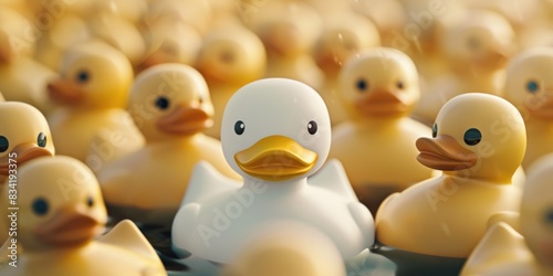A group of rubber ducks sitting in a line, often used as a decorative item or toy