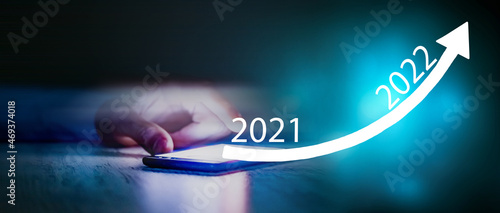 a growing graph in the form of an arrow in the phone from 2021 to 2022