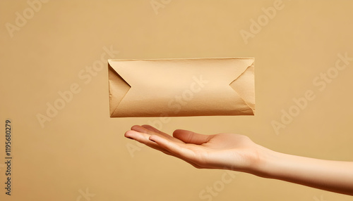 A hand extends, holding a simple brown package, symbolizing anticipation and the promise of something new. The warm background suggests a sense of comfort and security