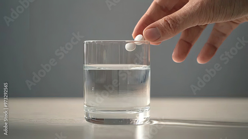 A hand gently placing pill into glass of water, creating moment of anticipation